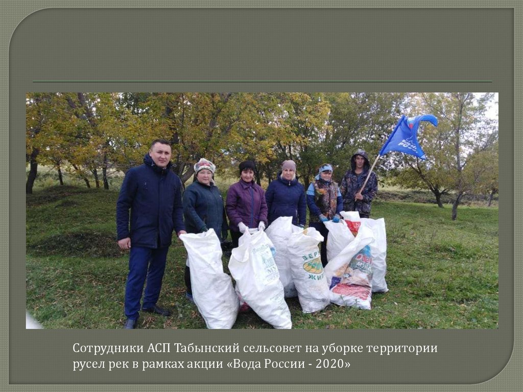 Сотрудники АСП Табынский сельсовет на уборке территориирусел рек в рамках акции «Вода России - 2020»