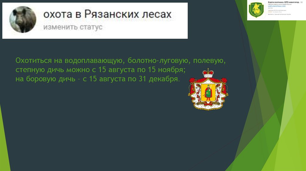 на боровую дичь – с 15 августа по 31 декабря.