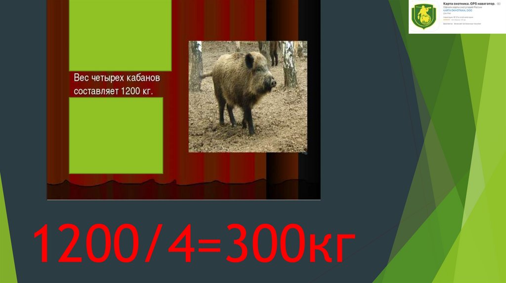 1200/4=300кг