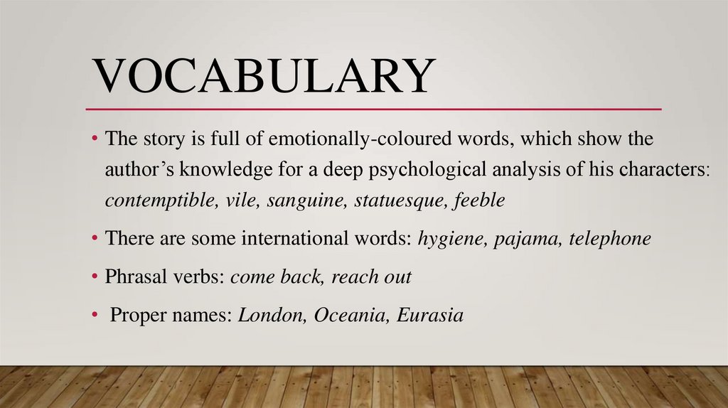 VOCABULARY• The story is full of emotionally-coloured words, which show the