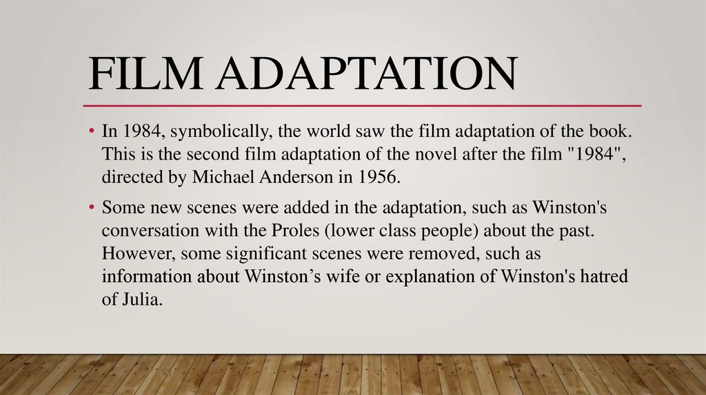 FILM ADAPTATION• In 1984, symbolically, the world saw the film adaptation of the book.