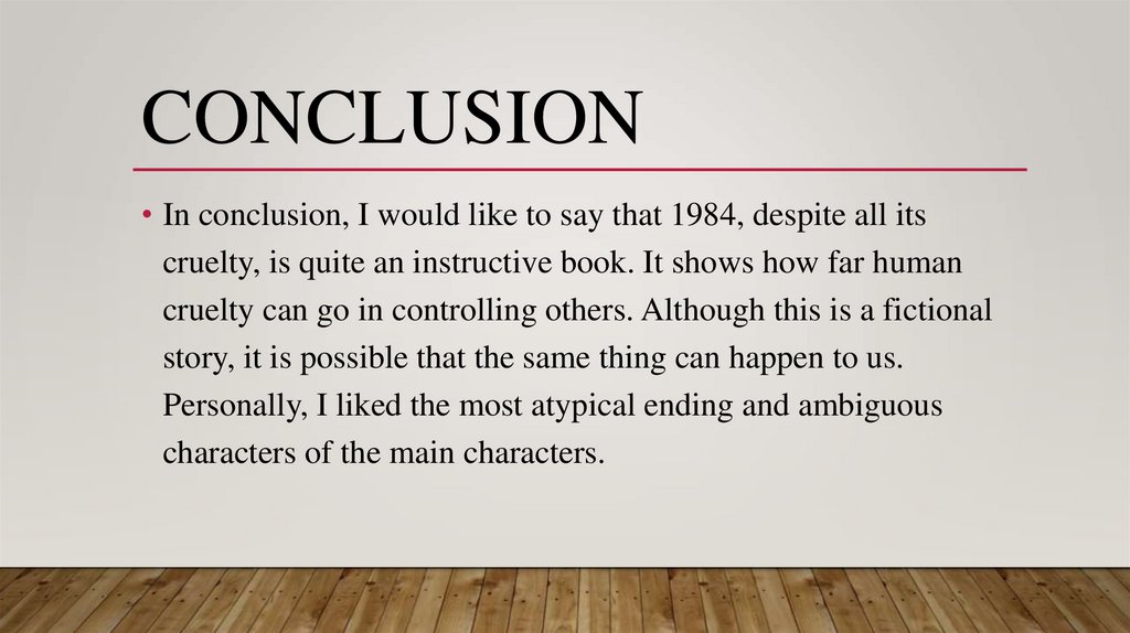 CONCLUSION• In conclusion, I would like to say that 1984, despite all its