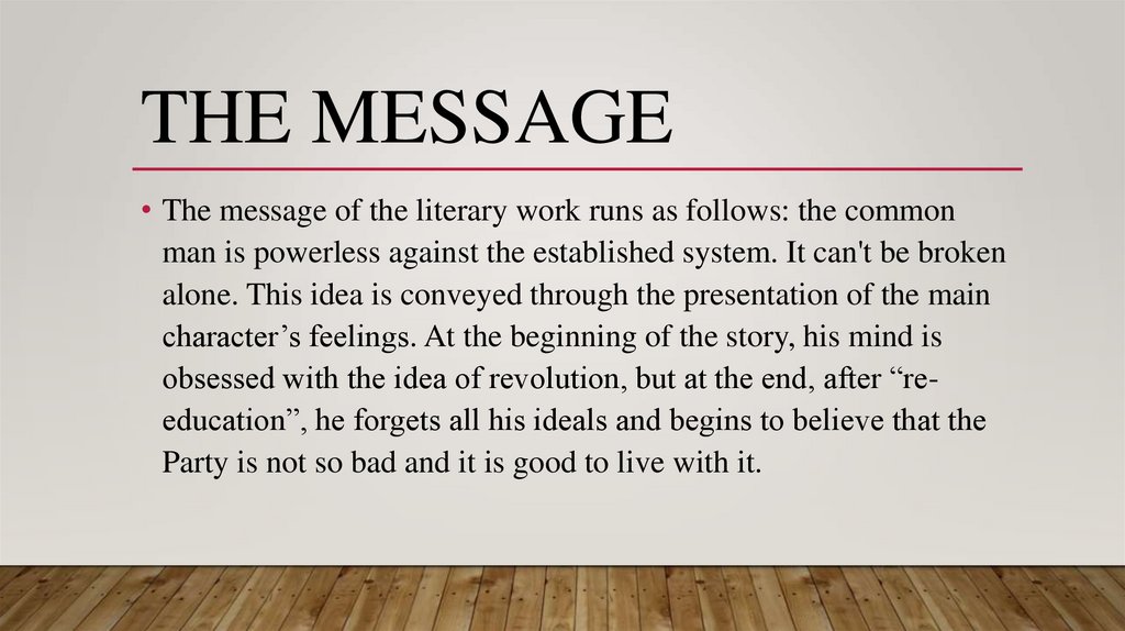 THE MESSAGE• The message of the literary work runs as follows: the common