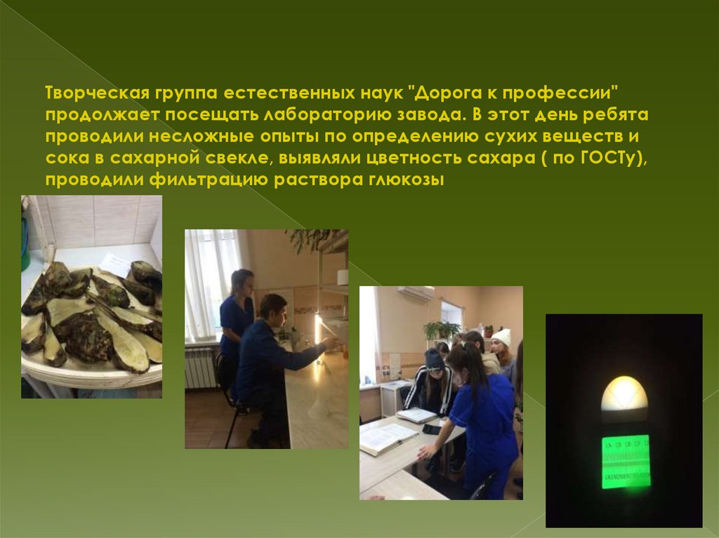 Творческая группа естественных наук "Дорога к профессии"продолжает посещать лабораторию завода. В этот день ребята