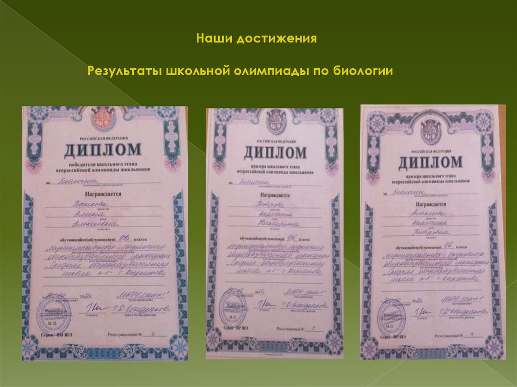 Наши достиженияРезультаты школьной олимпиады по биологии