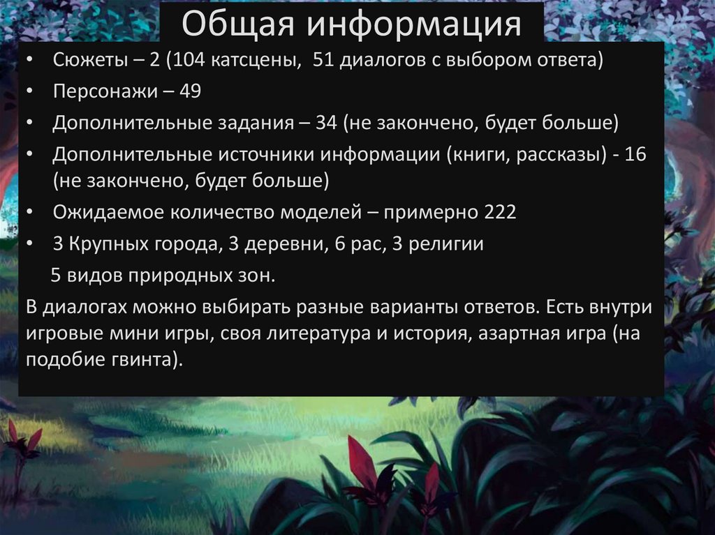 Общая информацияСюжеты – 2 (104 катсцены, 51 диалогов с выбором ответа)
