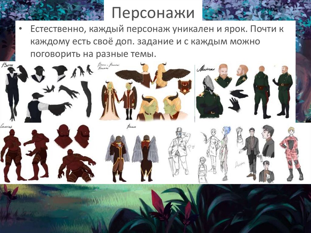 Персонажи• Естественно, каждый персонаж уникален и ярок. Почти к