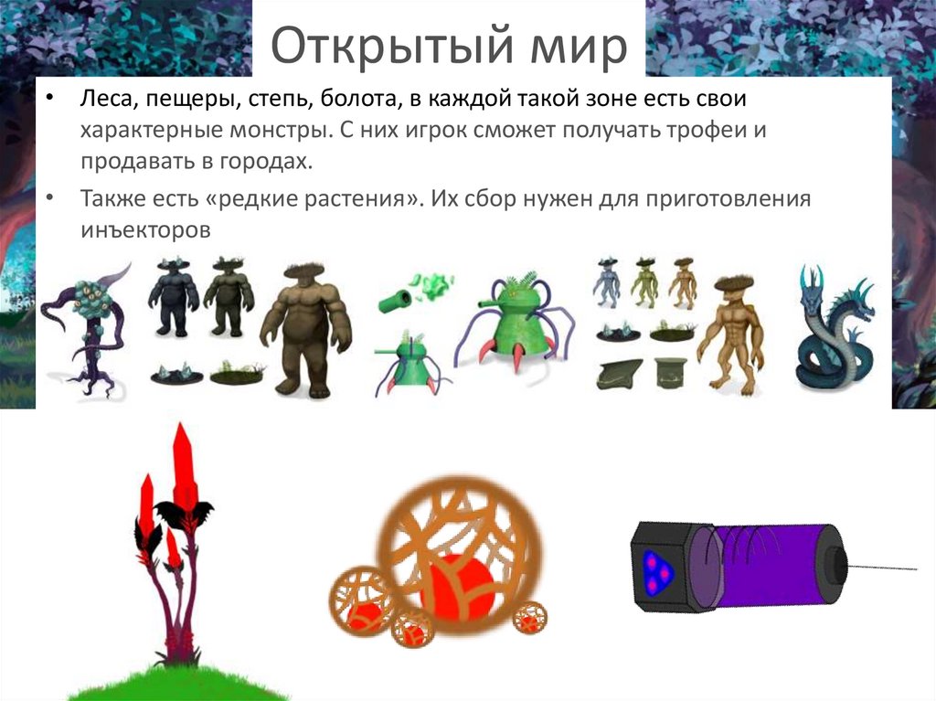 Открытый мир• Леса, пещеры, степь, болота, в каждой такой зоне есть свои