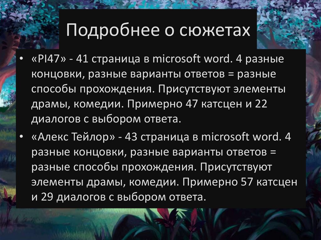 Подробнее о сюжетах• «PI47» - 41 страница в microsoft word. 4 разные