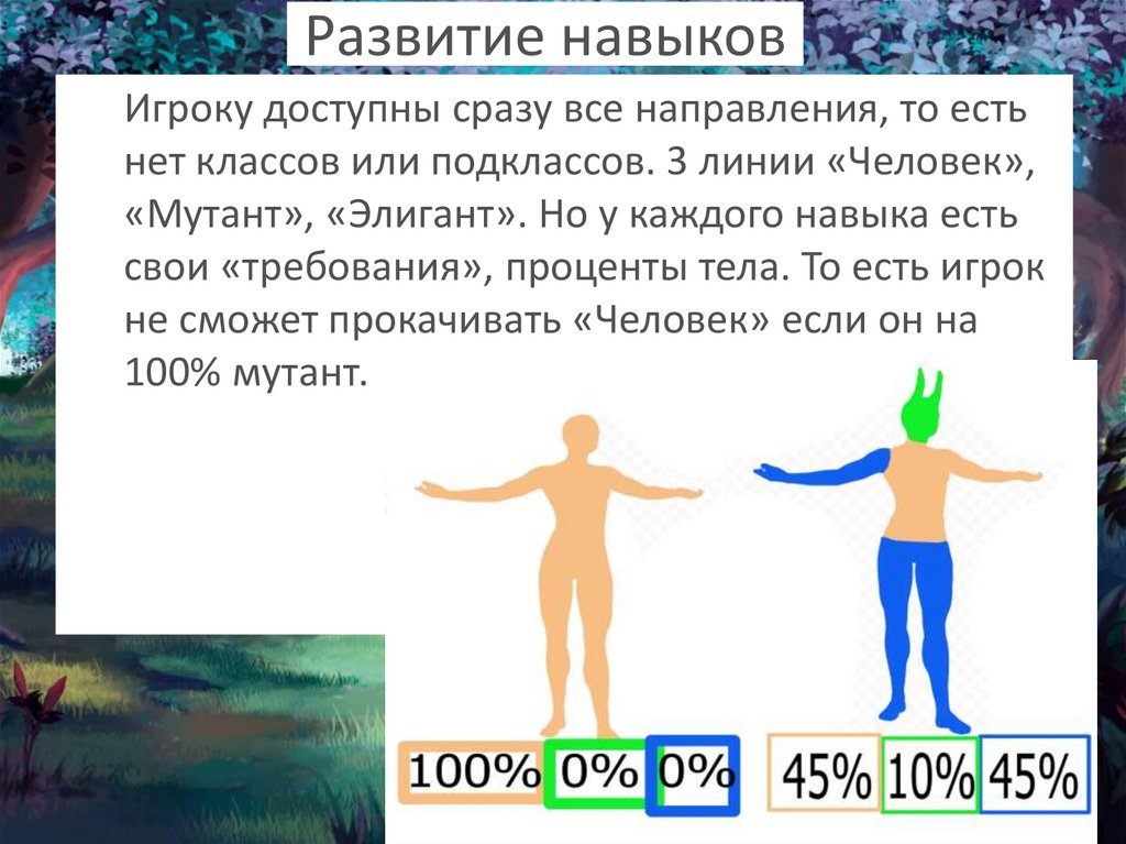 Развитие навыковИгроку доступны сразу все направления, то есть