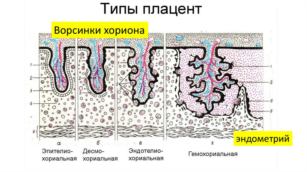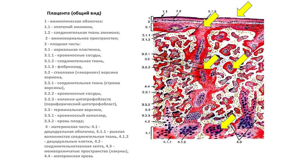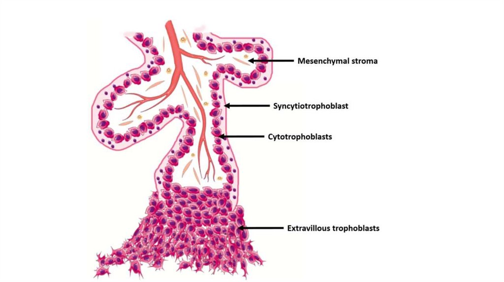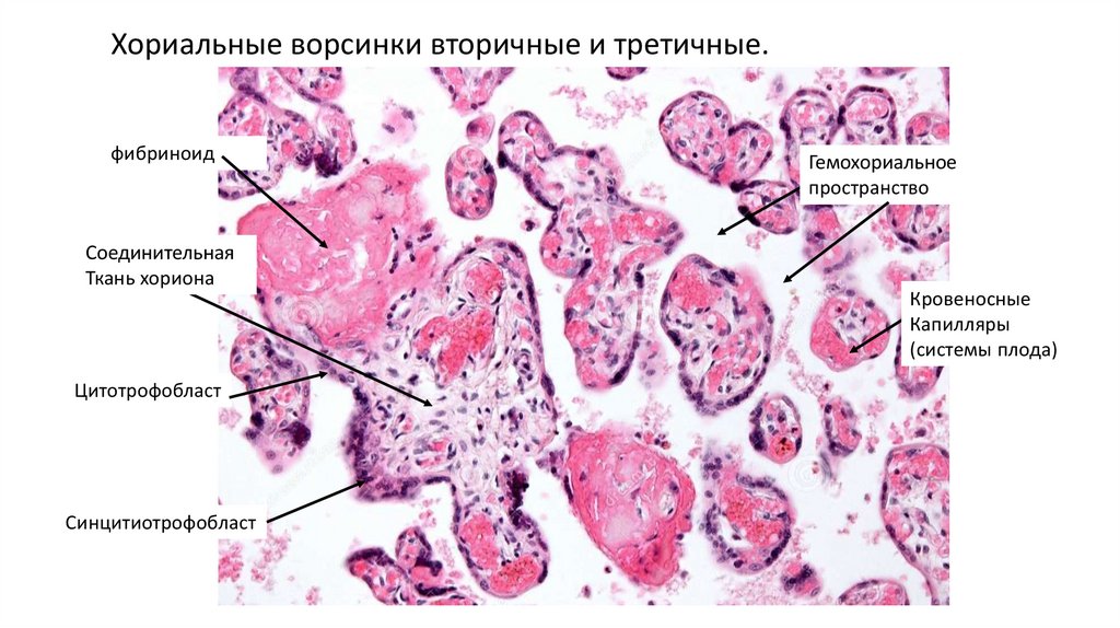 Хориальные ворсинки вторичные и третичные.фибриноид