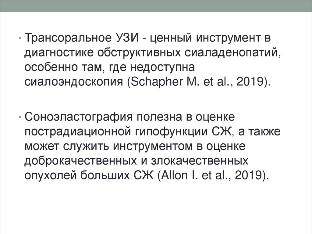 • Трансоральное УЗИ - ценный инструмент вдиагностике обструктивных сиаладенопатий,