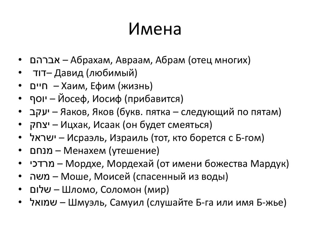 Имена – אברהםАбрахам, Авраам, Абрам (отец многих)