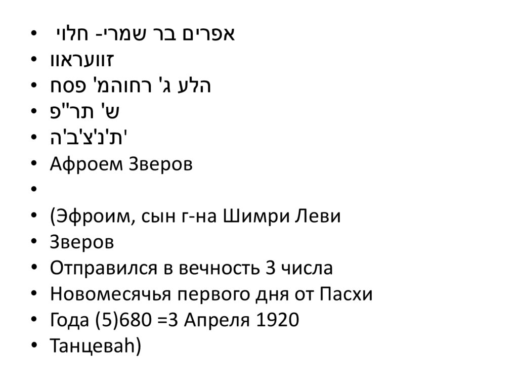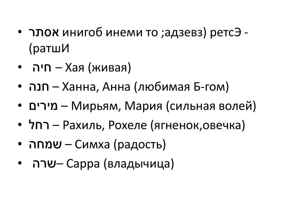 • אסתרинигоб инеми то ;адзевз) ретсЭ (ратшИ• – חיהХая (живая)