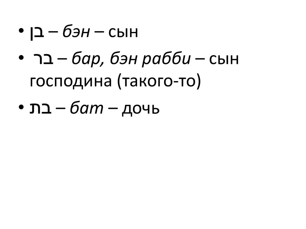 • – בןбэн – сын• – ברбар, бэн рабби – сын