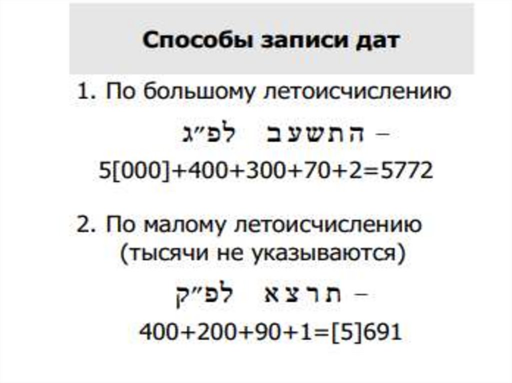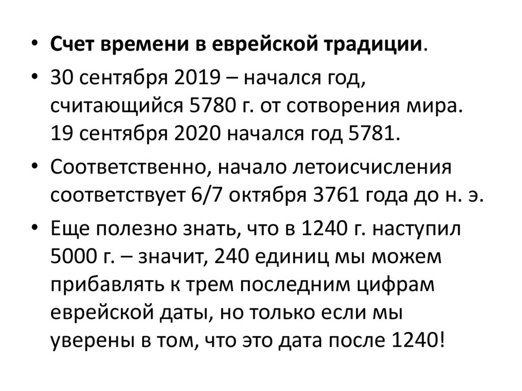 • Счет времени в еврейской традиции.• 30 сентября 2019 – начался год,