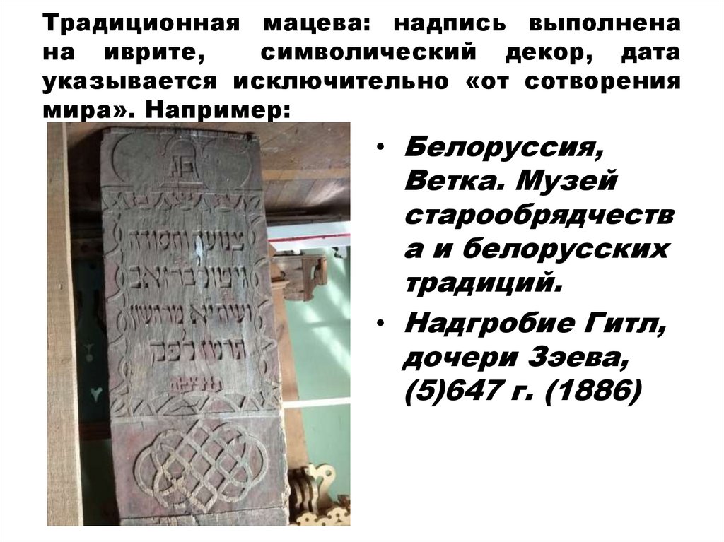 Традиционная мацева: надпись выполненана иврите,