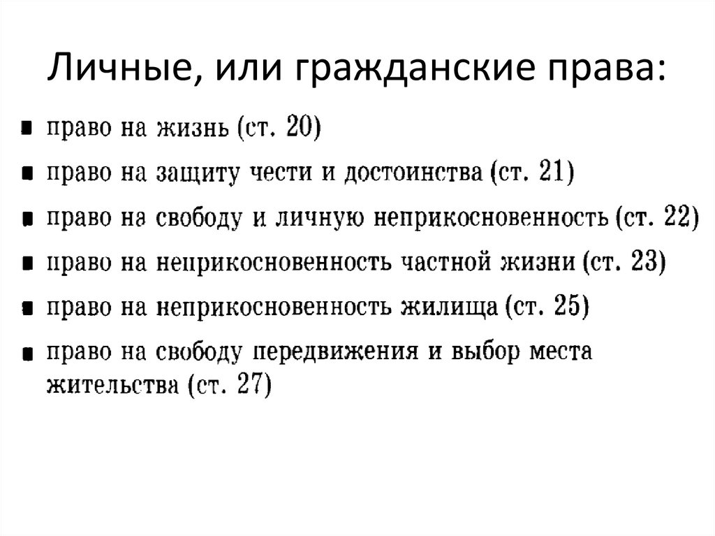 Личные, или гражданские права: