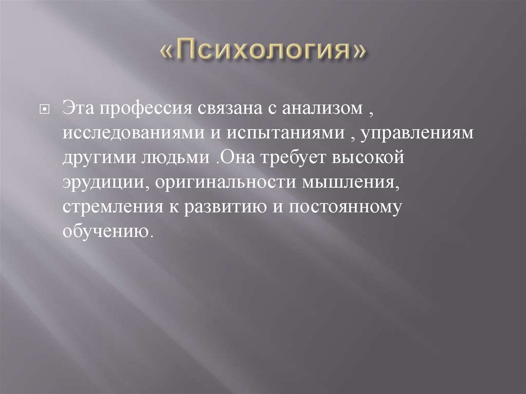 Для успешного усвоения профессии психологатребуются знания по биологии ,математики ,