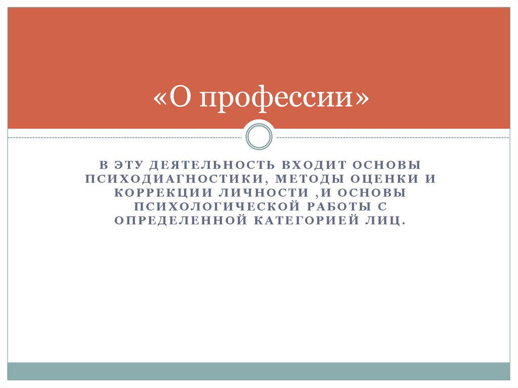 «О профессии»В ЭТУ ДЕЯТЕЛЬНОСТЬ ВХОДИТ ОСНОВЫ