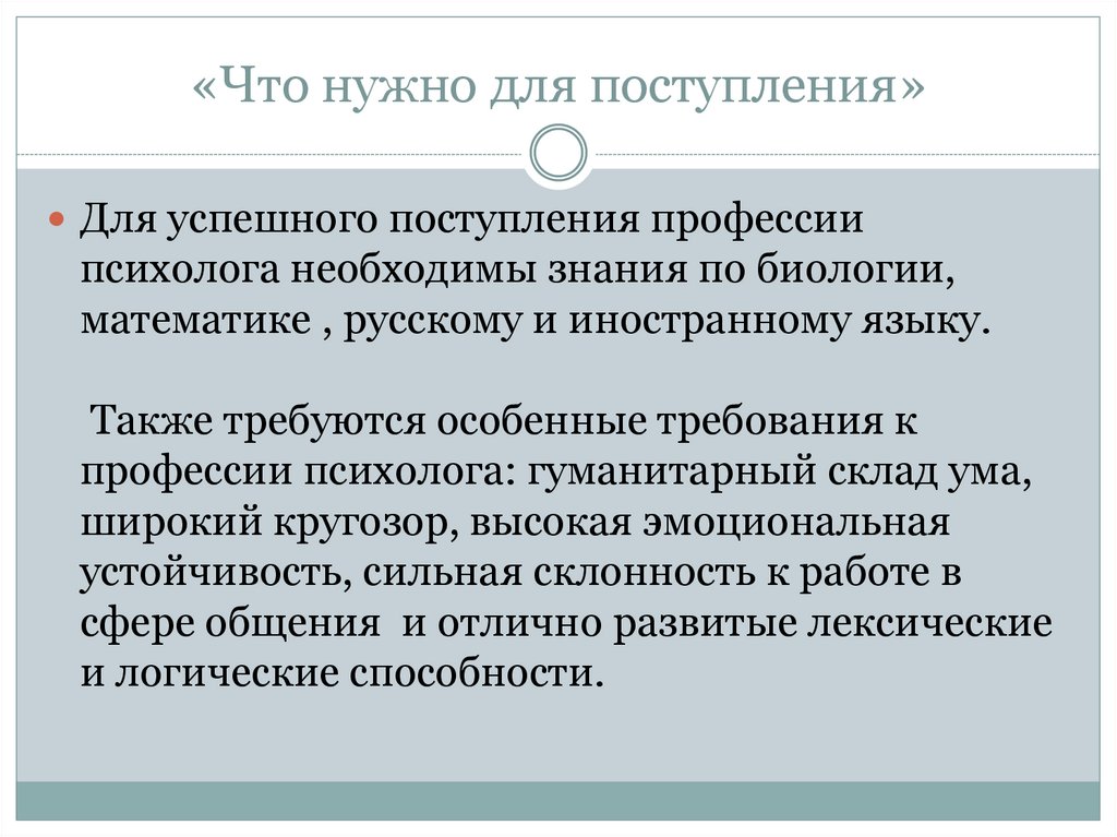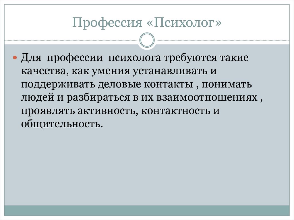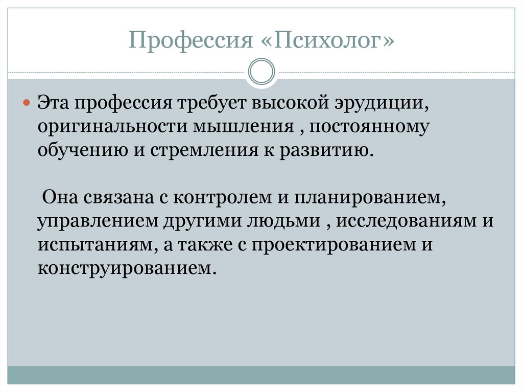Профессия «Психолог»Эта профессия требует высокой эрудиции,