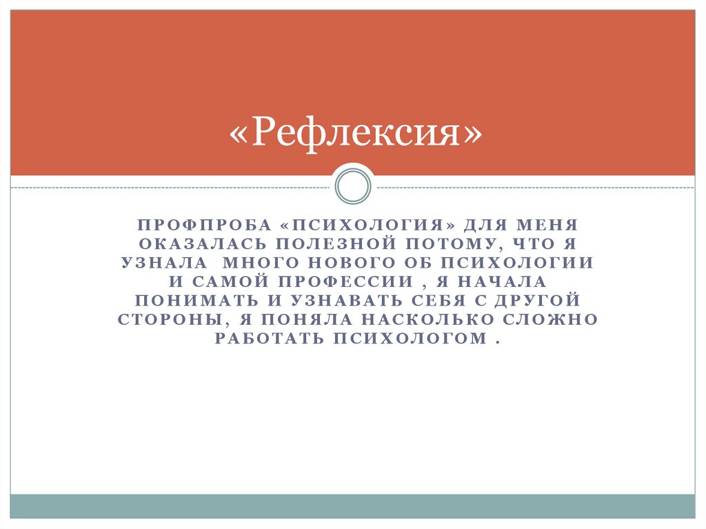 «Рефлексия»ПРОФПРОБА «ПСИХОЛОГИЯ» ДЛЯ МЕНЯ