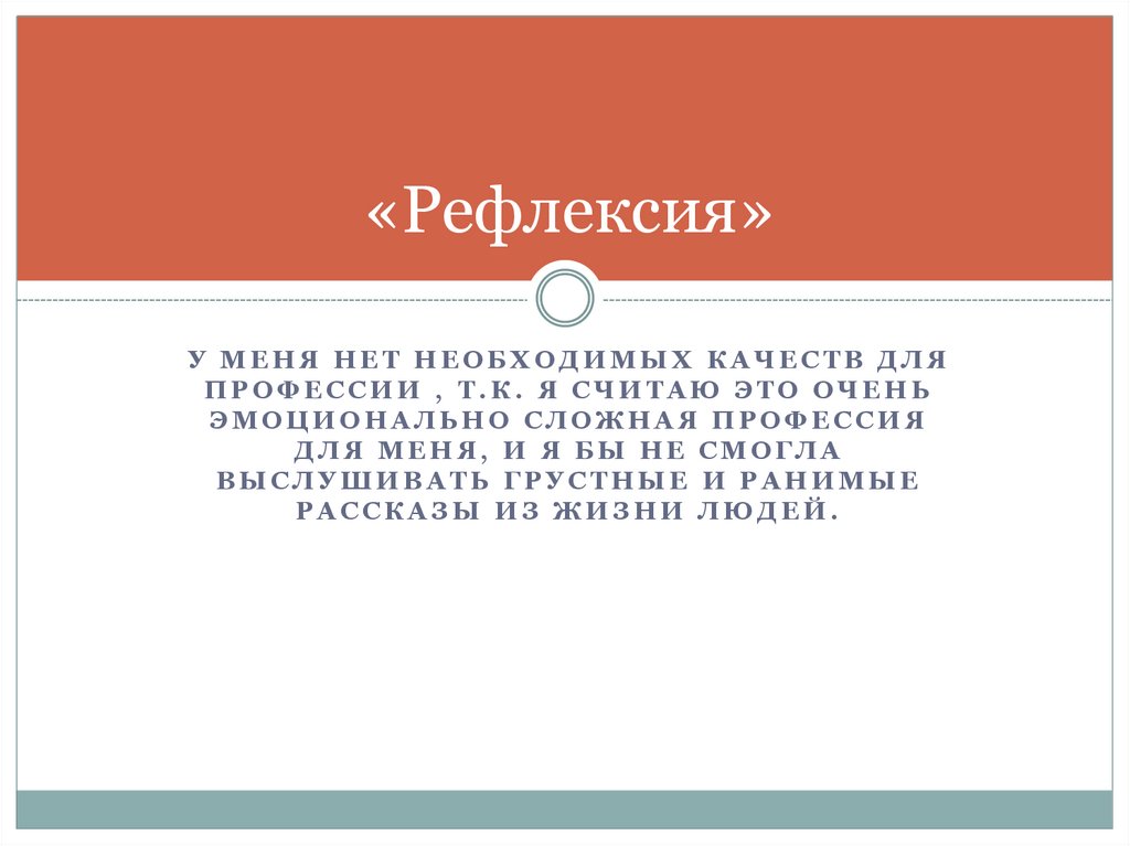 «Рефлексия»У МЕНЯ НЕТ НЕОБХОДИМЫХ КАЧЕСТВ ДЛЯ
