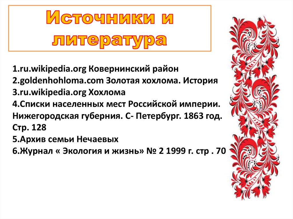1.ru.wikipedia.org Ковернинский район2.goldenhohloma.com Золотая хохлома. История
