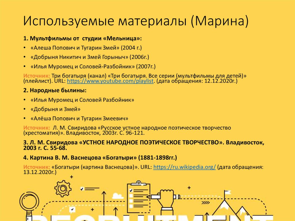 Используемые материалы (Марина)1. Мультфильмы от студии «Мельница»: