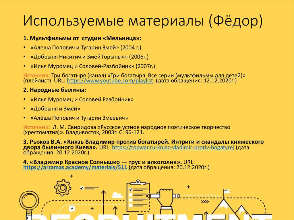 Используемые материалы (Фёдор)1. Мультфильмы от студии «Мельница»: