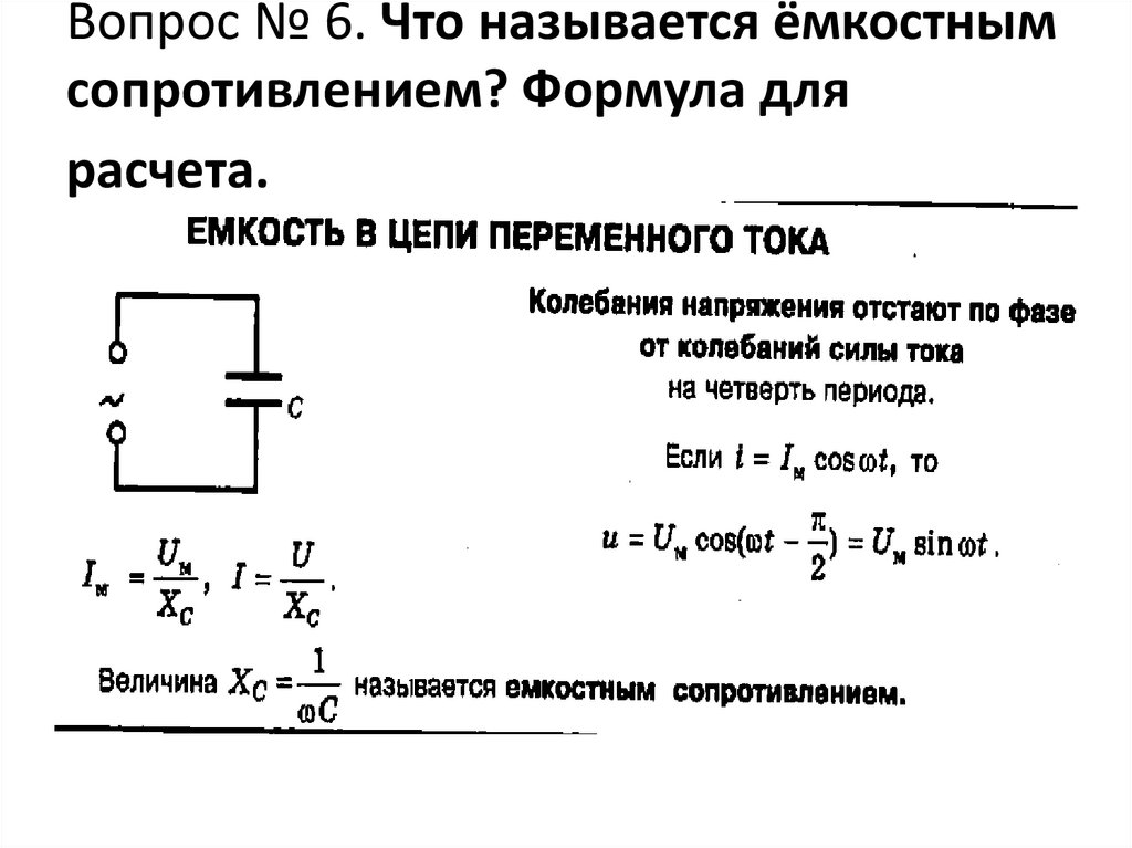 Вопрос № 6. Что называется ёмкостнымсопротивлением? Формула для