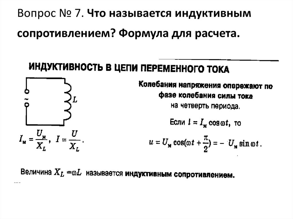 Вопрос № 7. Что называется индуктивнымсопротивлением? Формула для расчета.
