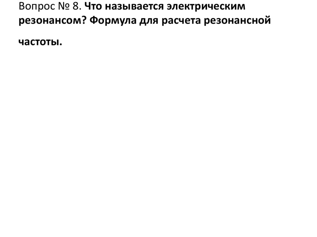 Вопрос № 8. Что называется электрическимрезонансом? Формула для расчета резонансной