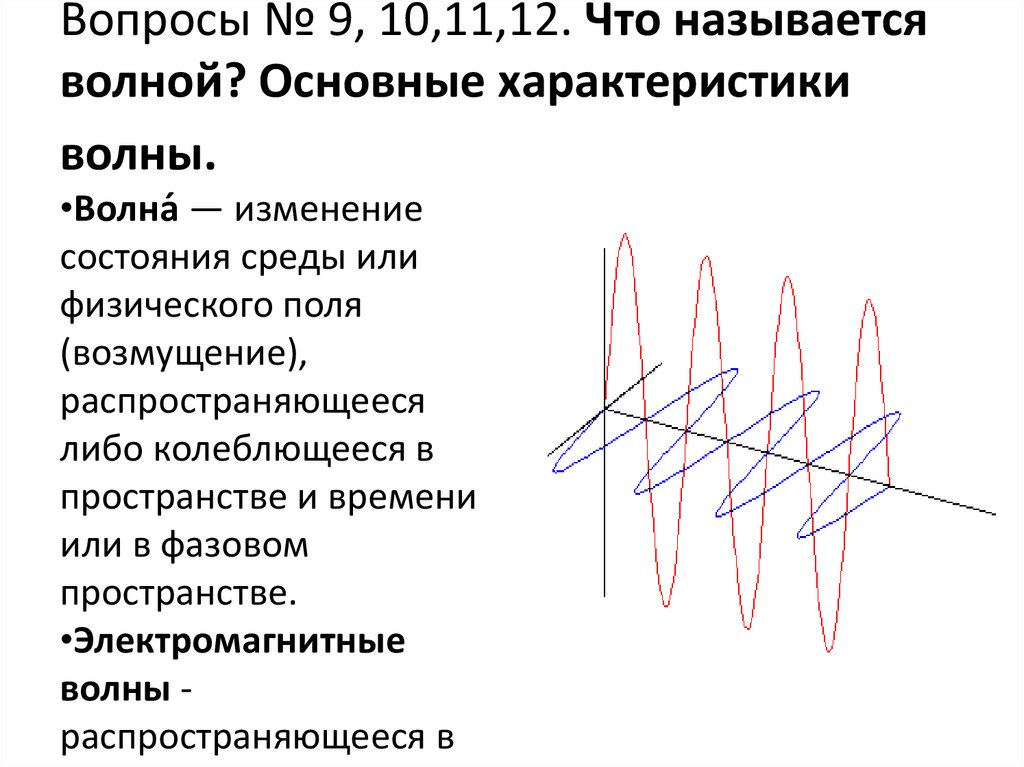 Вопросы № 9, 10,11,12. Что называетсяволной? Основные характеристики