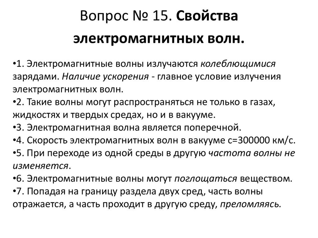 Вопрос № 15. Свойстваэлектромагнитных волн.