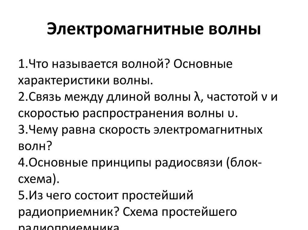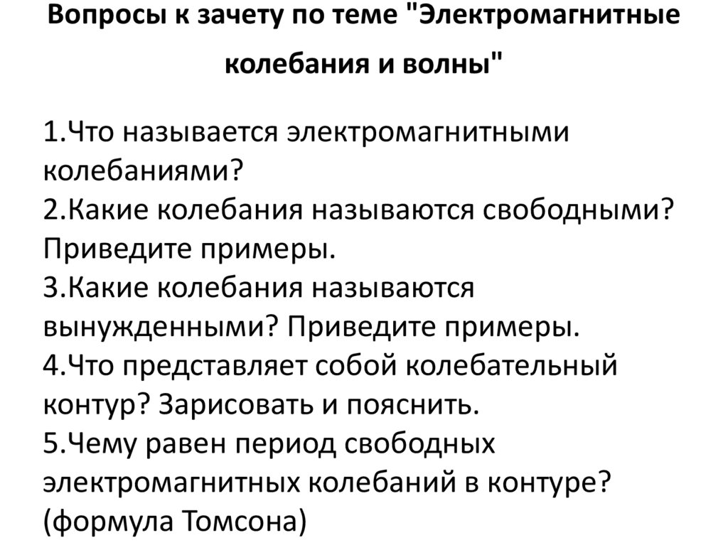Вопросы к зачету по теме "Электромагнитныеколебания и волны"