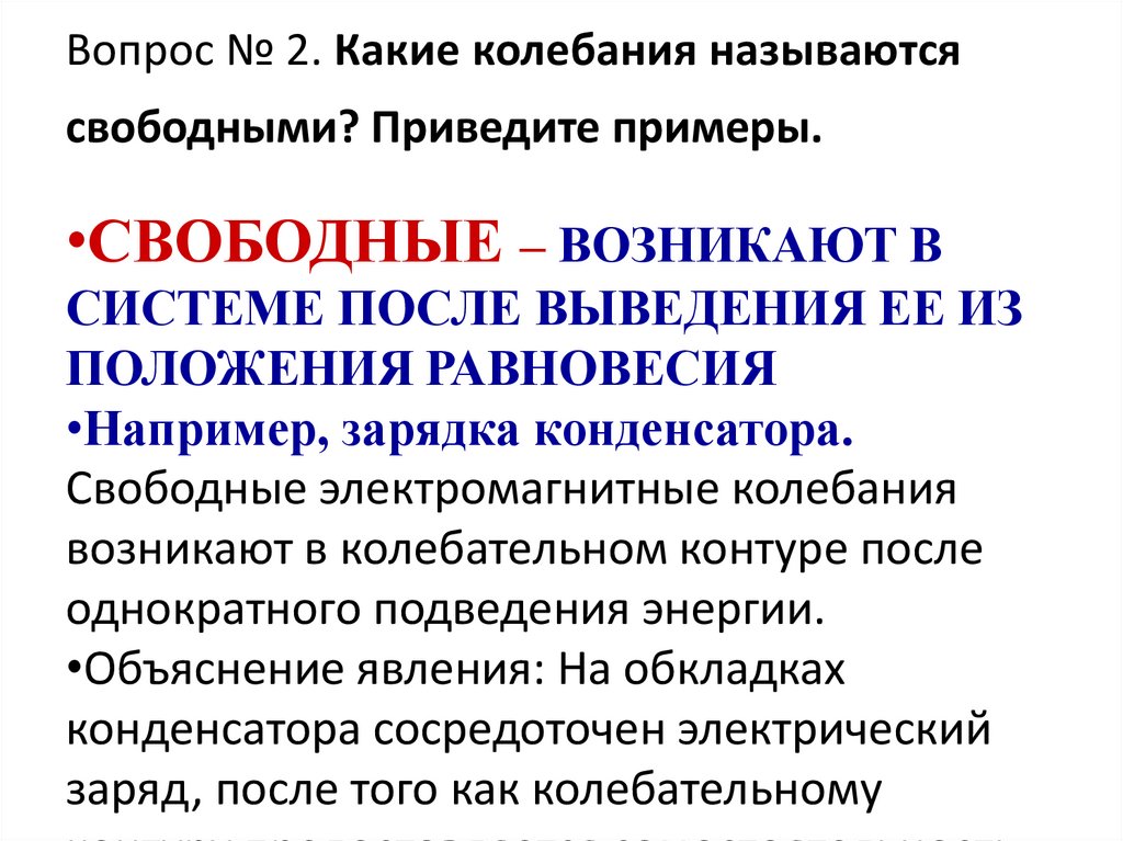 Вопрос № 2. Какие колебания называютсясвободными? Приведите примеры.