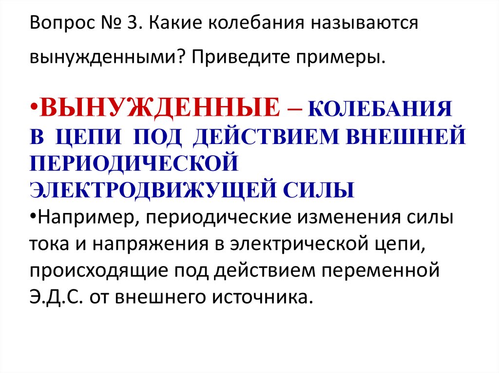 Вопрос № 3. Какие колебания называютсявынужденными? Приведите примеры.