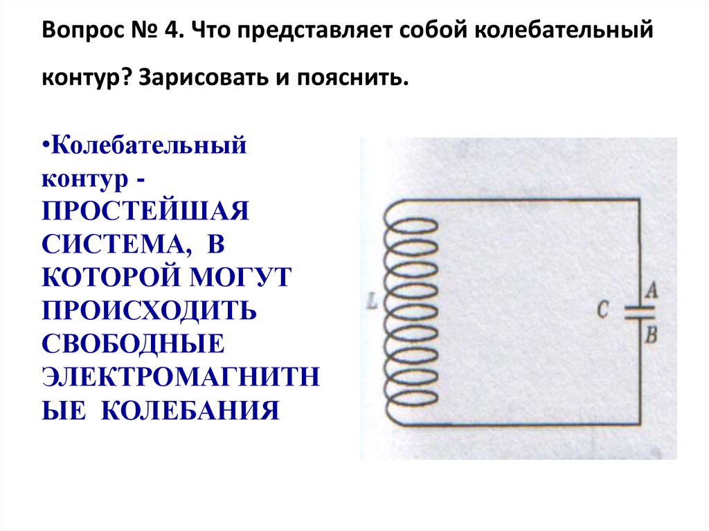 Вопрос № 4. Что представляет собой колебательныйконтур? Зарисовать и пояснить.