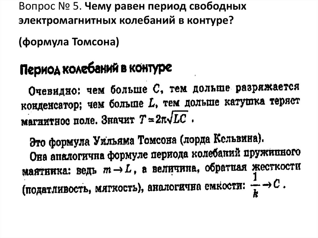 Вопрос № 5. Чему равен период свободныхэлектромагнитных колебаний в контуре?