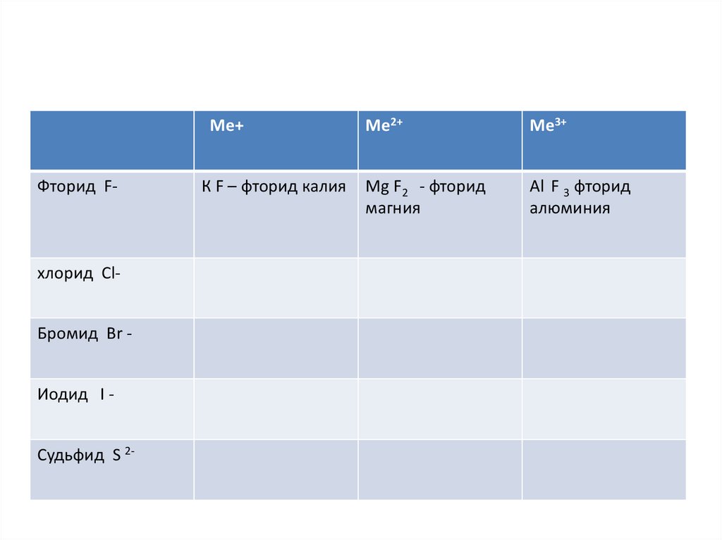 хлорид ClБромид Br Иодид I Судьфид S 2-
