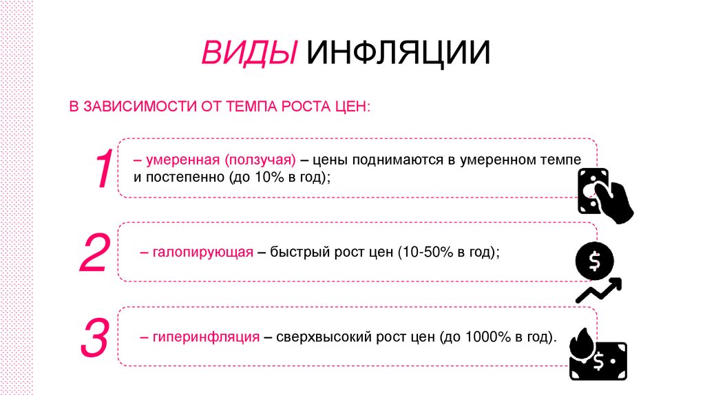 ВИДЫ ИНФЛЯЦИИВ ЗАВИСИМОСТИ ОТ ТЕМПА РОСТА ЦЕН: