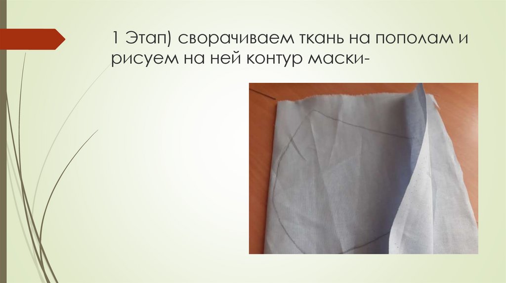 1 Этап) сворачиваем ткань на пополам и