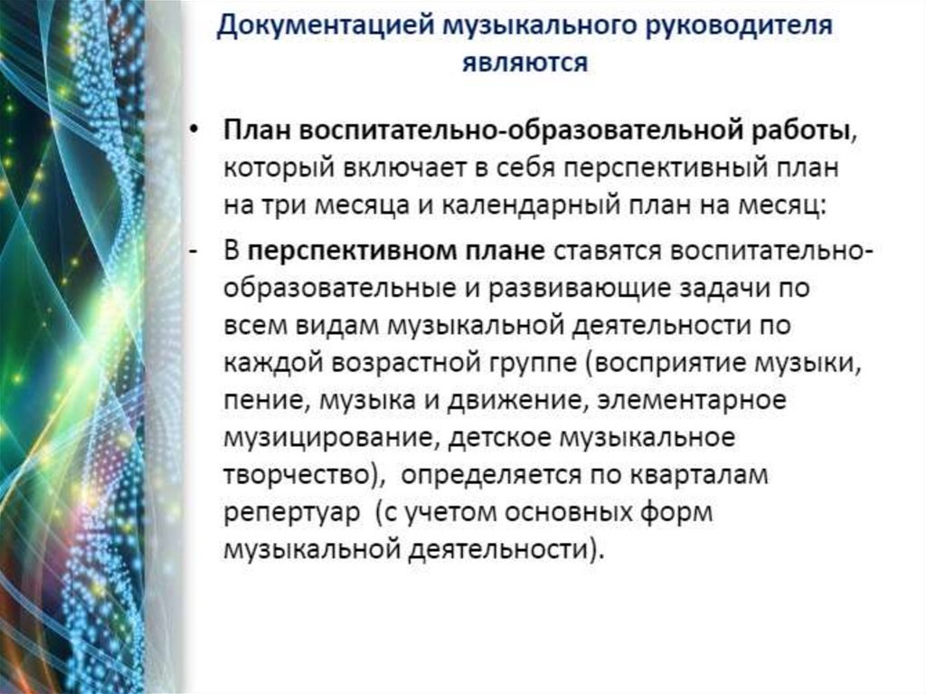 Планировние работы по музыкальному воспитанию