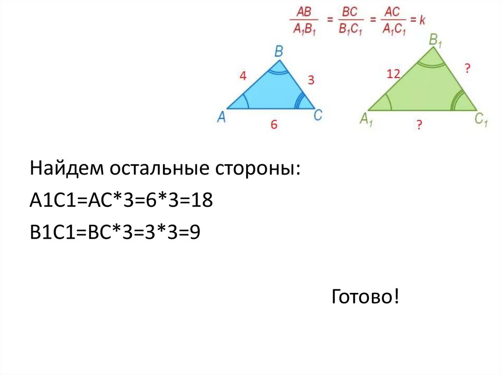 Найдем остальные стороны:А1С1=АС*3=6*3=18