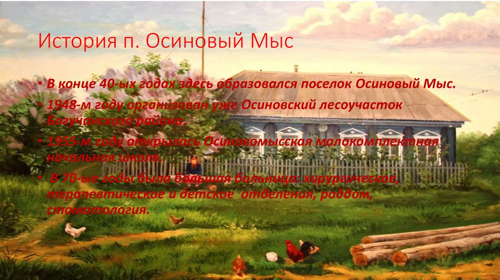 История п. Осиновый Мыс• В конце 40-ых годах здесь образовался поселок Осиновый Мыс.
