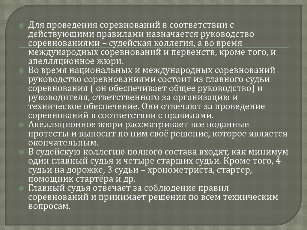соревнованиями – судейская коллегия, а во время