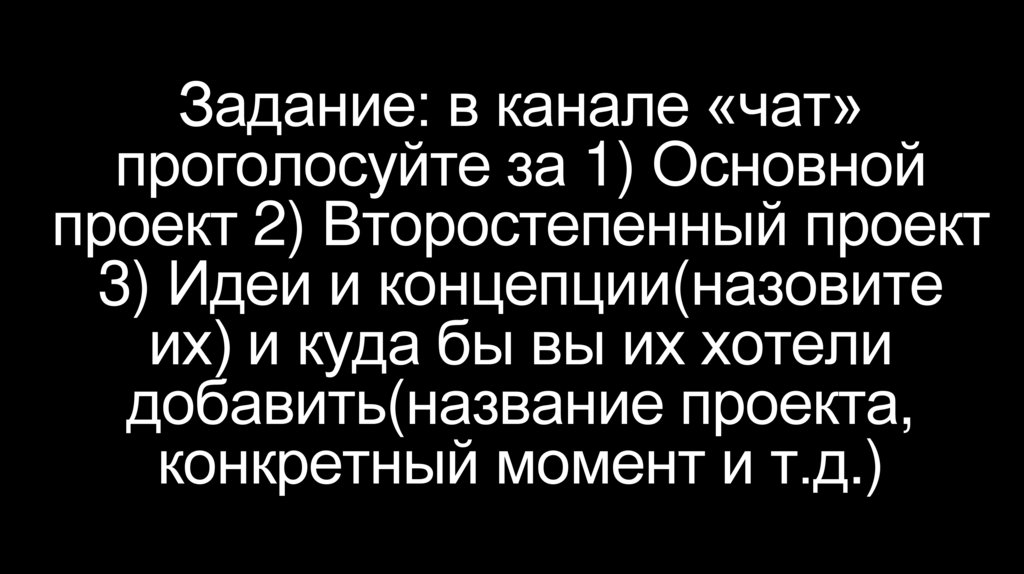 Задание: в канале «чат»проголосуйте за 1) Основной