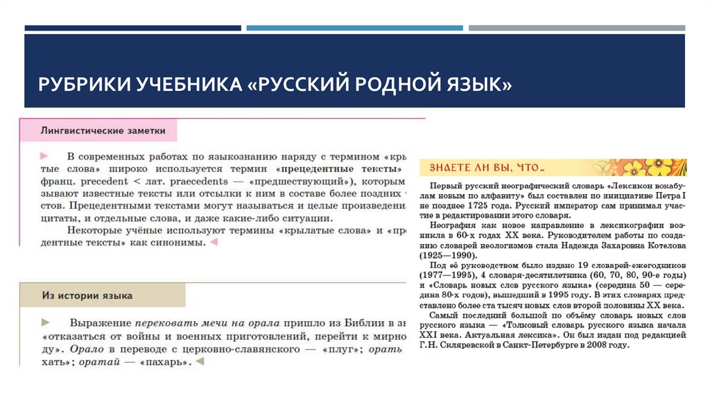 РУБРИКИ УЧЕБНИКА «РУССКИЙ РОДНОЙ ЯЗЫК»14.