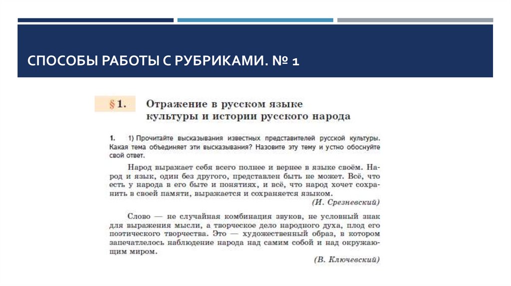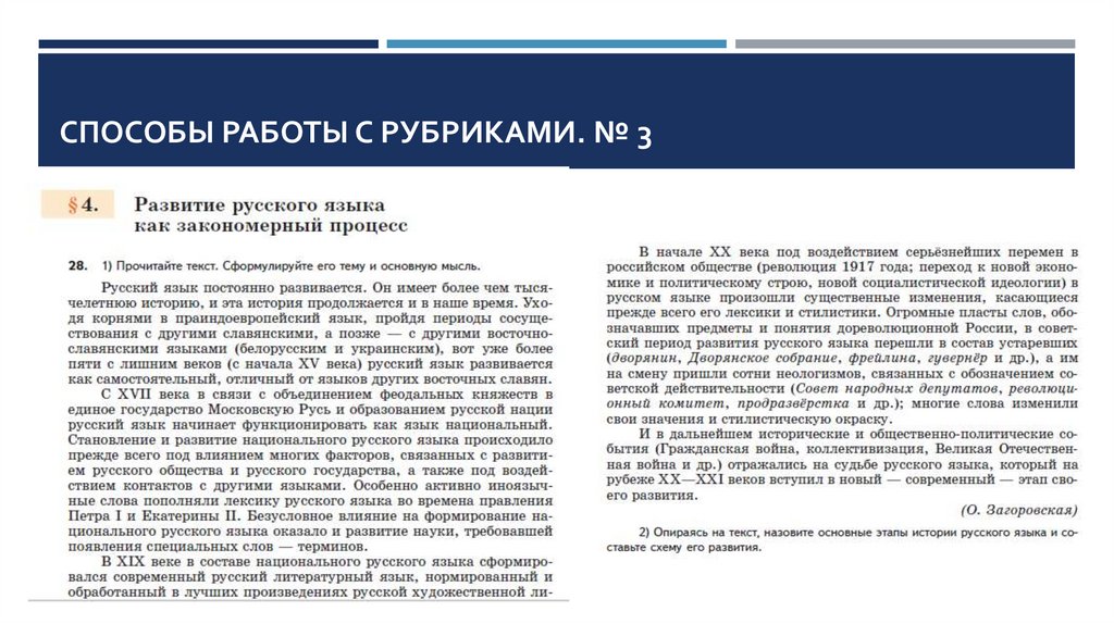 СПОСОБЫ РАБОТЫ С РУБРИКАМИ УЧЕБНИКА«РУССКИЙ РОДНОЙ ЯЗЫК»